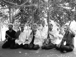 夏季的喀什,空氣中涌動著濕潤的氣息。這個玉石一般潤滑的綠洲一派生機。在老城夯土滄桑的背影中,一陣憂傷的琴聲在城市上空回蕩,古老的《十二木卡姆》剎那間奏響耳邊?;匚吨鴦偛诺那俾暎杏X就是它——沙它爾,只有它的憂傷才會讓木卡姆如此動人心弦。