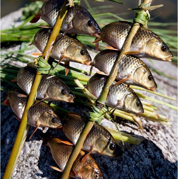 苗家人吃魚的方法有煮、炒、腌酸、晾干等,而最具風味的要數(shù)用火炭燒烤至熟,味道以鮮、美、嫩、香、甜為特色,而且吃法也新穎別致,饒有情趣。